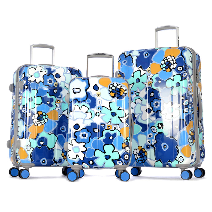 "Blossom Ii" 3 Piece Hardcase Luggage Set W/Tsa Lock In Blue