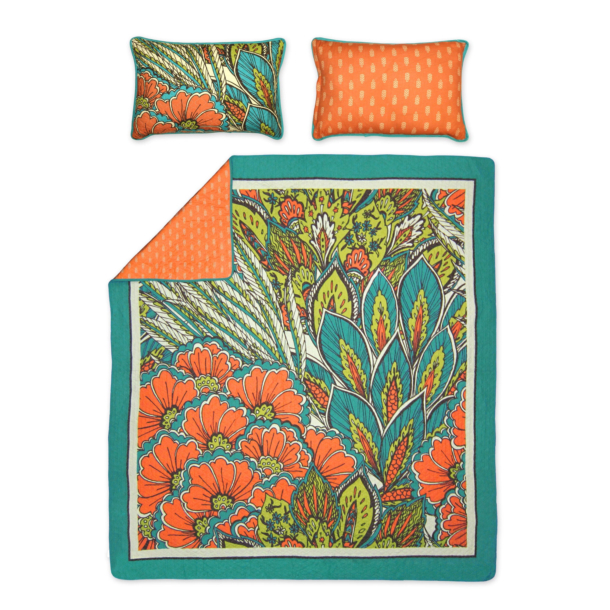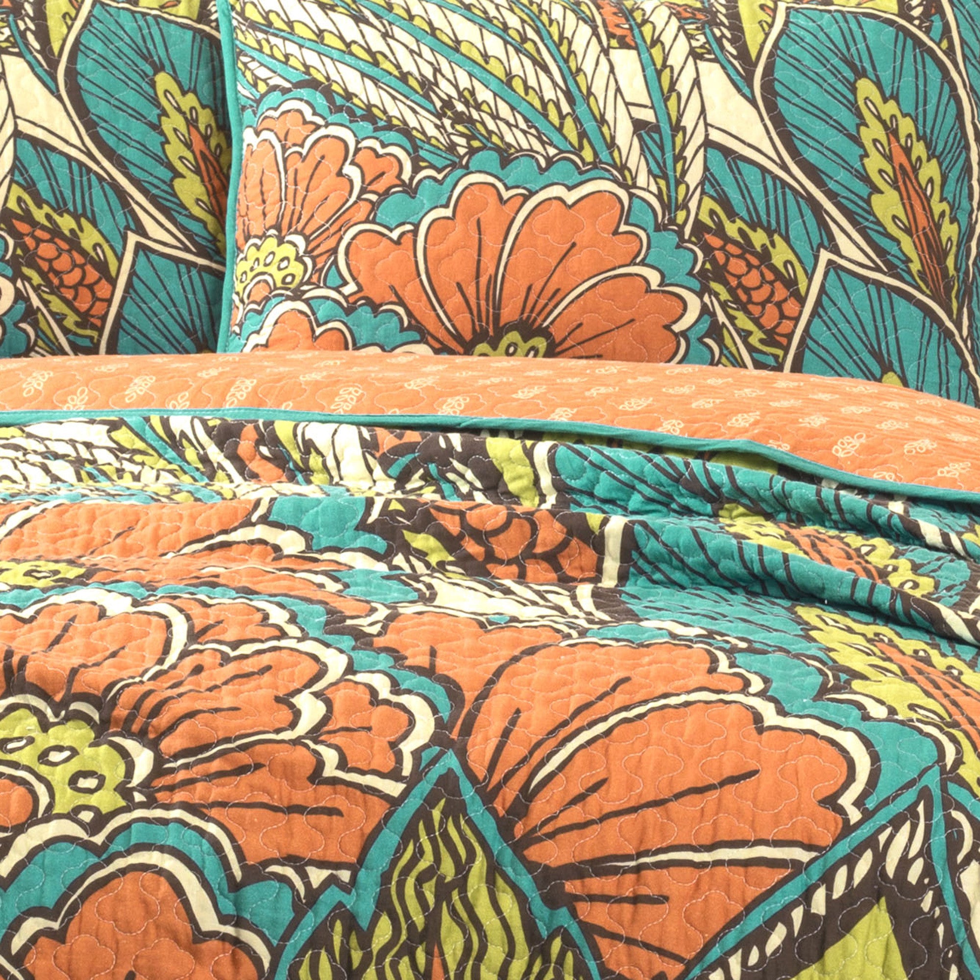 Elena Quilt Turquoise/ Orange 3pc Set King